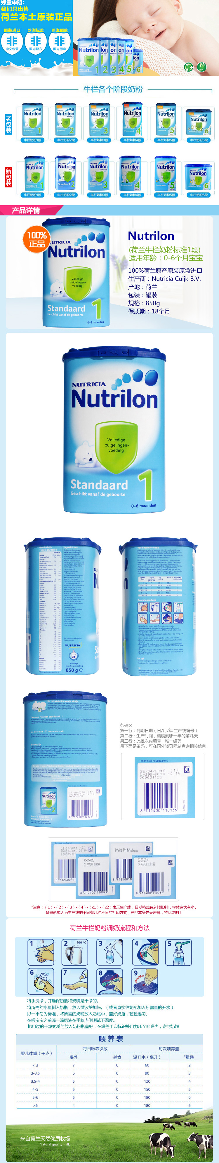 新包装 新鲜现货 荷兰本土Nutrilon牛栏一段奶粉 850g/罐