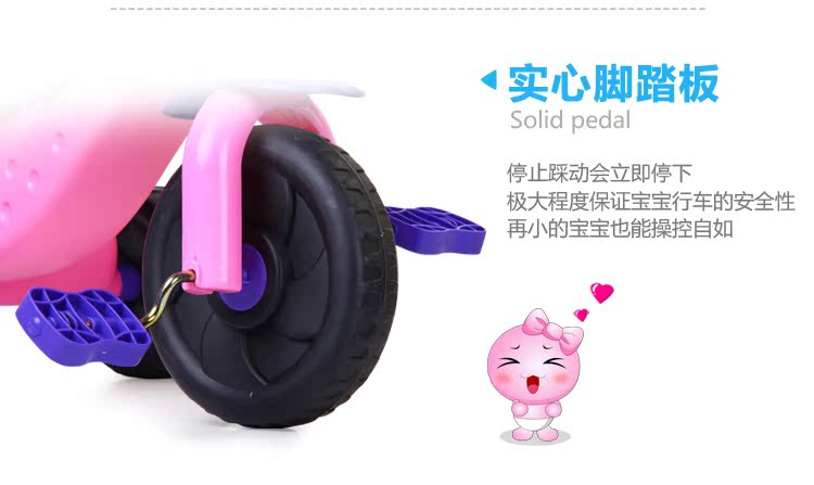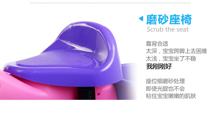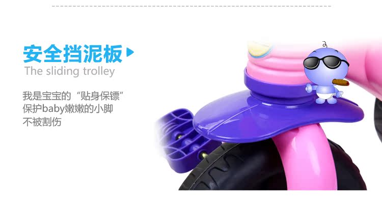 答:这款车子是专为70-100cm身高设计,车身等腰流线设计,各零件间的结构距离都经过精密计算和测试。身体的姿势、发力、体重等细小变化都会改变车身的动平衡,从而促使宝宝进行调整,找到新平衡技巧。