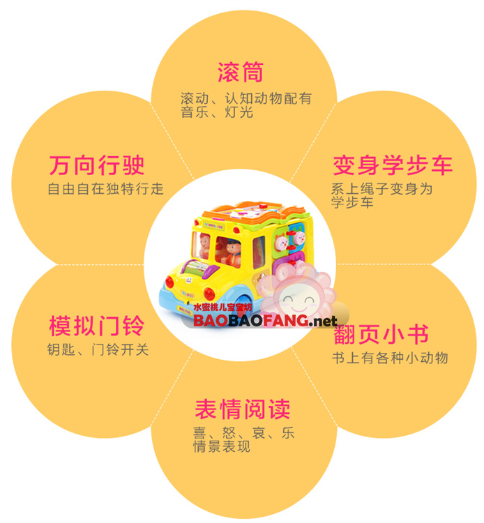 品牌:HUILE TOYS/汇乐玩具 型号:796 外观造型(重要请一定填写):公交巴士车 颜色分类:带音乐 是否遥控(重要请一定填写):不含 是否有导购视频:有 套餐类型:万向自动行驶 适用年龄:12个月 18个月 2岁 3岁 宝贝名称 校园巴士 宝贝型号 796 商品品牌 汇乐 适合年...