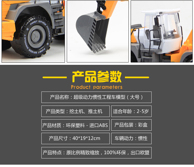 前进方式:惯性 品牌:建雄 颜色分类:工程挖土车+铲子 工程推土车+铲子 挖土车 推土车 特大号挖土机 特大号推土机 外观造型:工程车 适用年龄:2岁 3岁 4岁 5岁 6岁 包邮地区 再购买任何商品均可包邮 (需拍下联系客服) 掌柜提示: 该款宝贝是惯性车,让宝宝用小...
