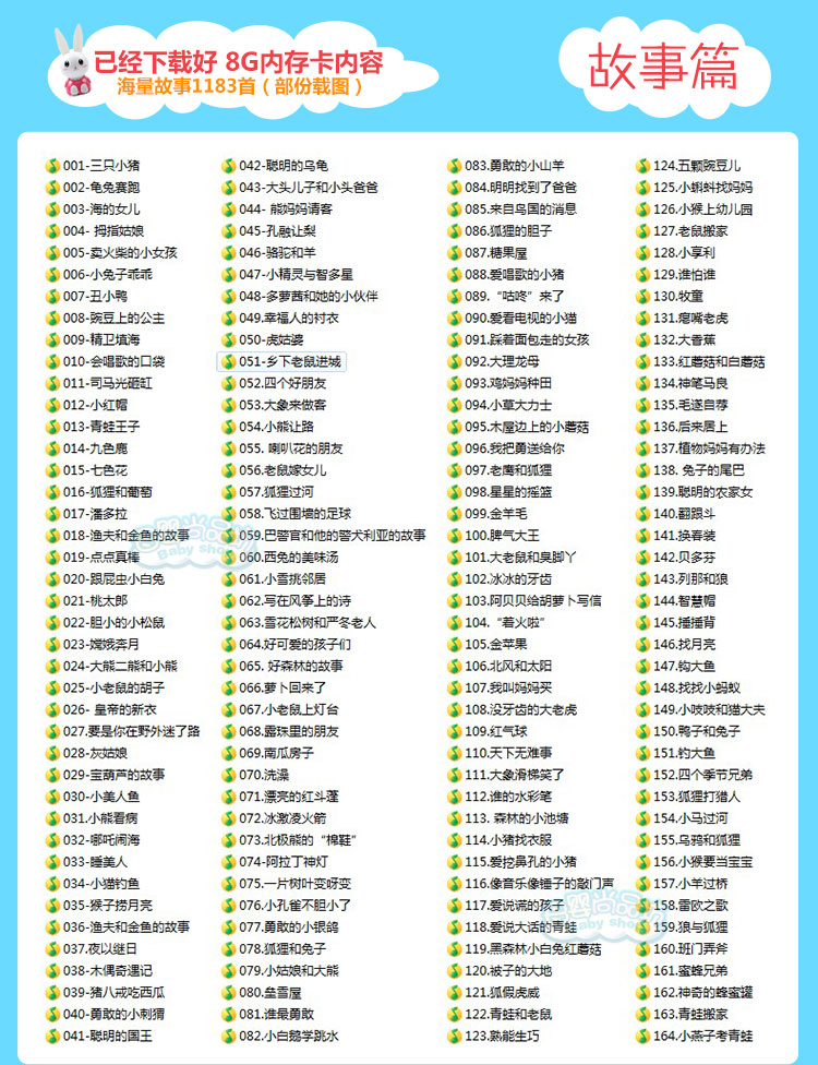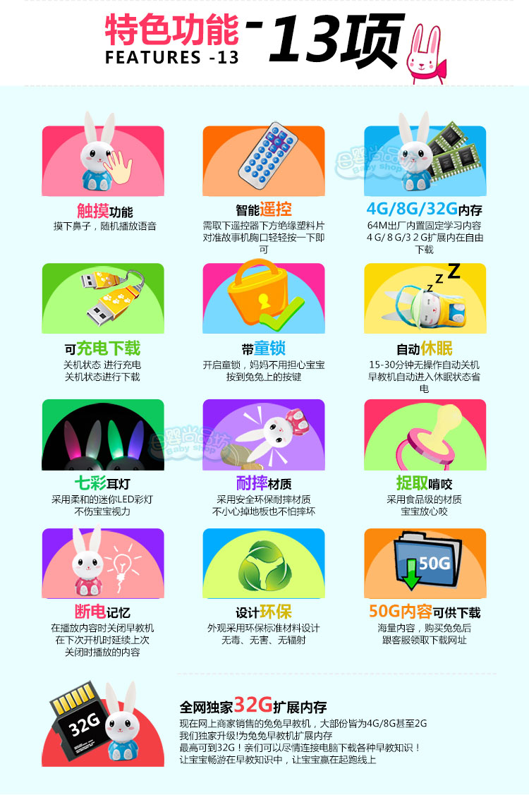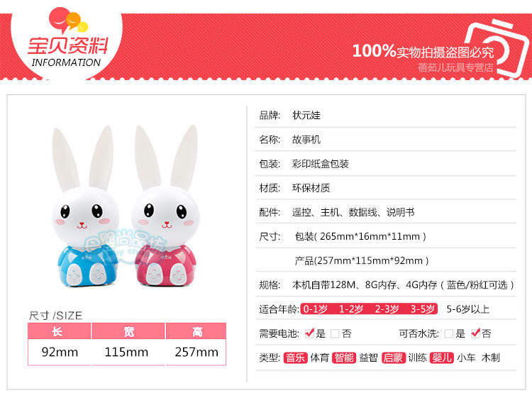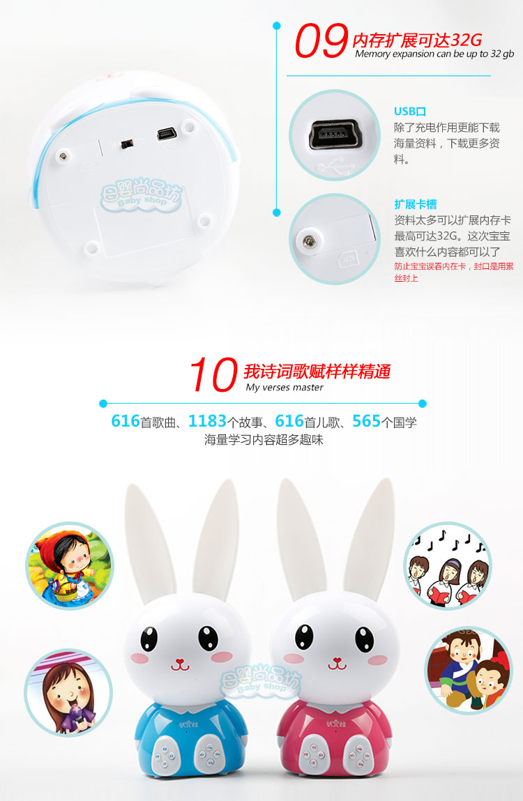品牌:母婴尚品坊 颜色分类:粉色小火兔故事机送电池 蓝色小火兔故事机送电池 蓝色充电款8G+可爱防摔包 蓝色充电款4G+可爱防摔包 粉色充电款8G+可爱防摔包 粉色充电款4G+可爱防摔包 粉色充电款64M+可爱防摔包 蓝色充电款64M+可爱防摔包 内存容量:其他 是否有导...
