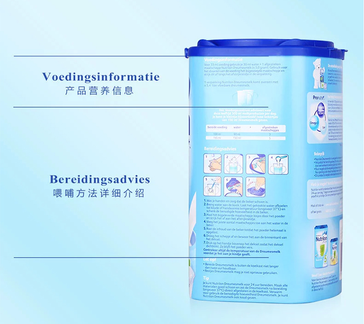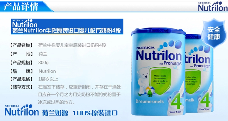 2.产品直接从欧洲和荷兰原装进口。NUTRICIA旗下品牌在荷兰、澳大利亚以及欧洲各国均占据市场领导地位。