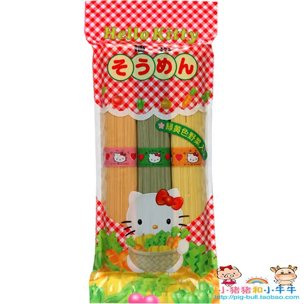 可爱好吃又营养!日本进口Kanesu Hello kitty播州三色蔬菜面 宝宝挂面细面 300g