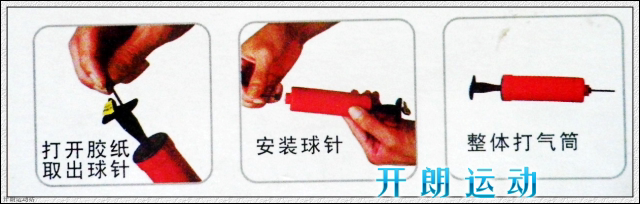 温馨提醒:球针在打气筒手柄处,黄色标签揭开盖子在里面!