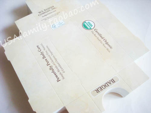 美国制造,网址是:www.badgerbalm.com注意 反面第一页右边中间有Peel here字样,是让您掀开看。提示您按角标揭开后,有更多的产品信息提示。铁盒面积有限,所以更多信息就得采用说明覆盖的方式提供给大家。