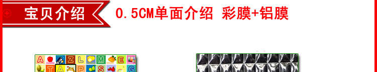 产品材质:表面是opp彩膜,内层是epe珍珠棉