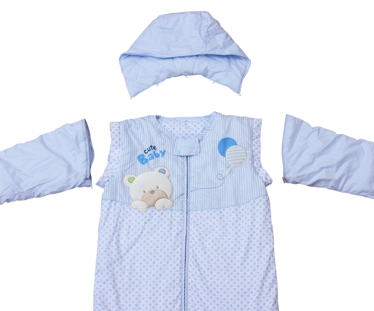 1、此成长睡袋两只袖管可脱卸,底部若太长可折短(下面的这部分可以去掉),还有护袖口设计.
