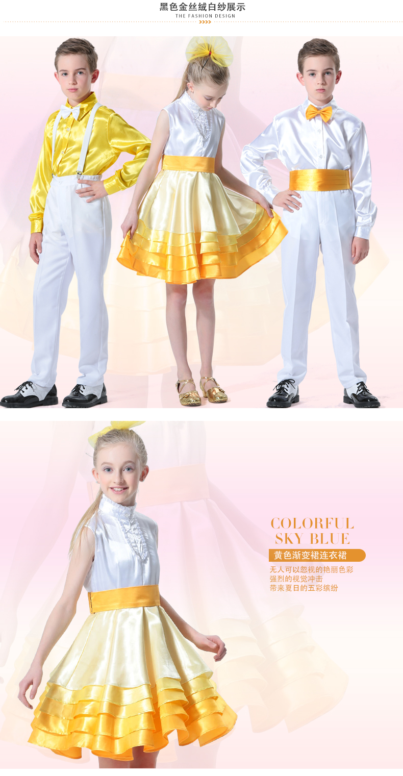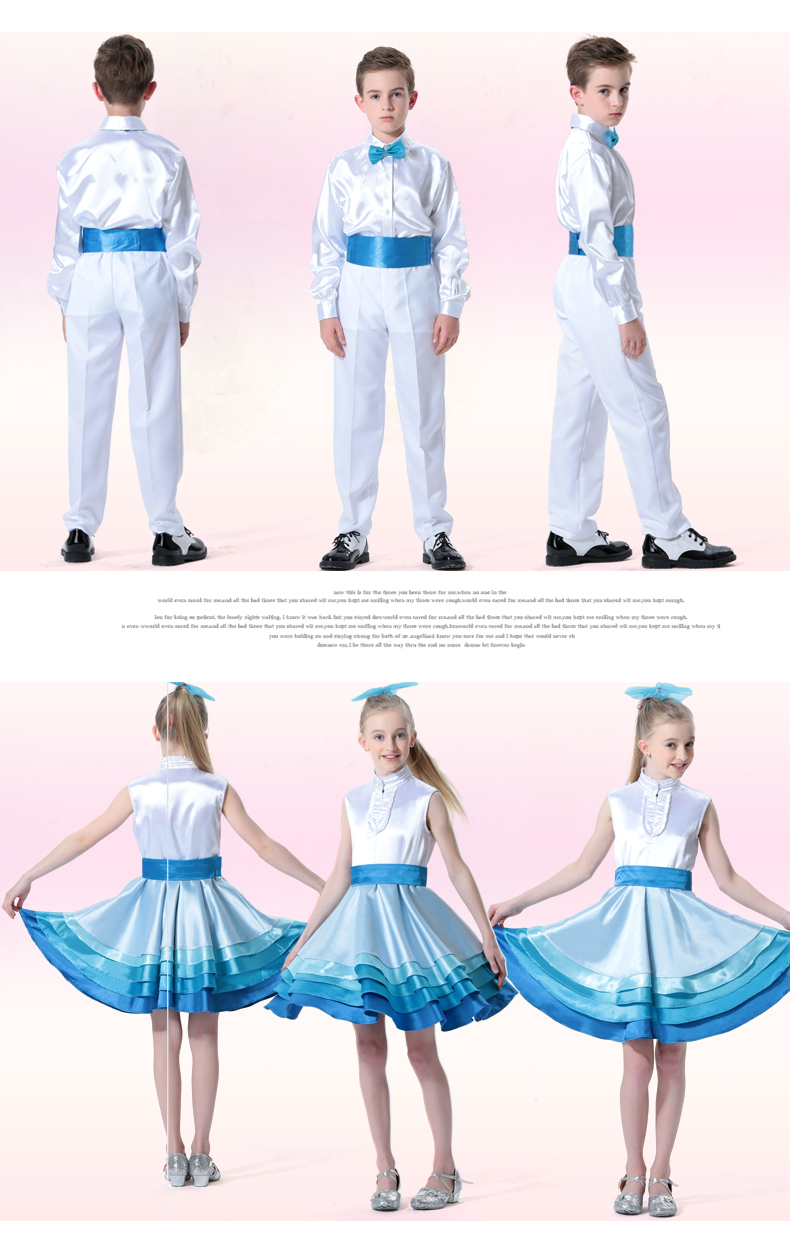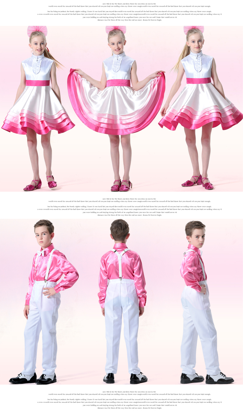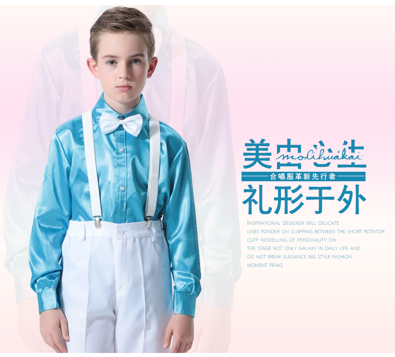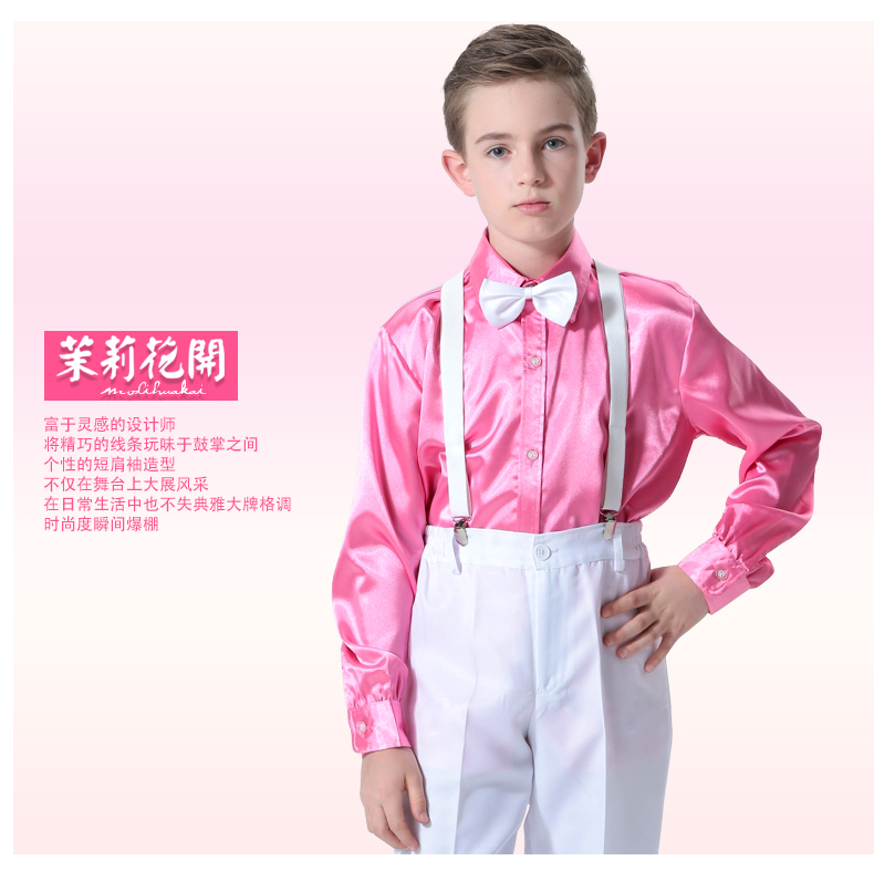 品牌:茉莉花开 安全等级:B类 材质成分:粘胶纤维(粘纤)100% 面料:其他 颜色分类:女孩(渐变粉连衣裙+头花) 男(白衬衣+腰封+白裤+领结) 女孩(渐变蓝连衣裙+头花) 男(白衬衣+腰封+白裤+领结) 男粉衬衣+白裤+黑领结+黑背带 男蓝衬衣+白裤+黑背带+红领带 女-渐...