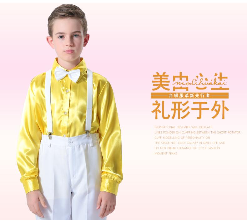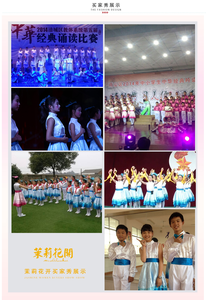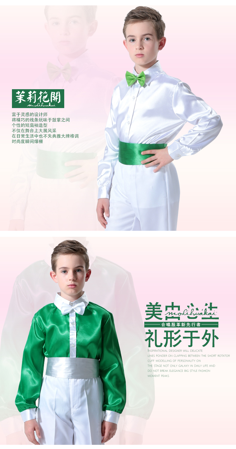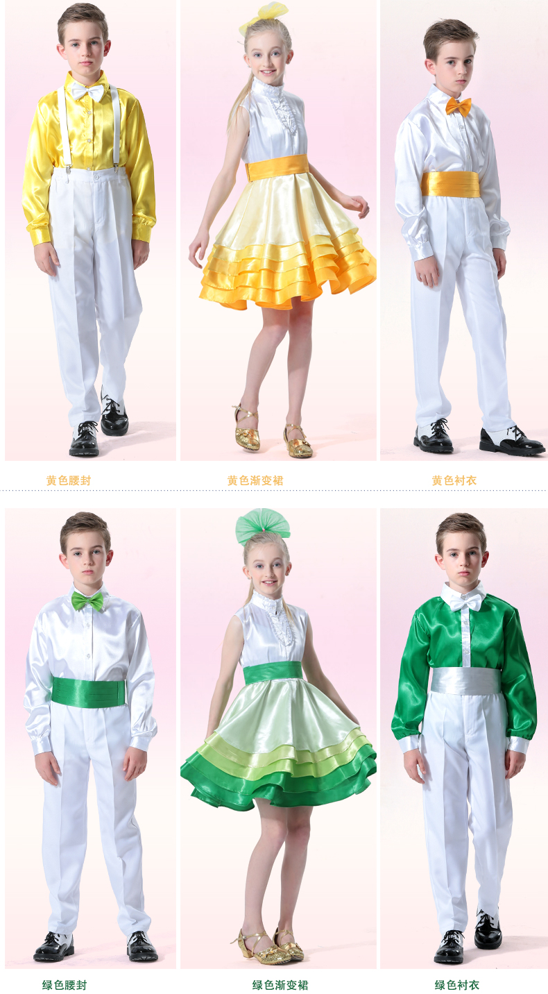 品牌:茉莉花开 安全等级:B类 材质成分:粘胶纤维(粘纤)100% 面料:其他 颜色分类:女孩(渐变粉连衣裙+头花) 男(白衬衣+腰封+白裤+领结) 女孩(渐变蓝连衣裙+头花) 男(白衬衣+腰封+白裤+领结) 男粉衬衣+白裤+黑领结+黑背带 男蓝衬衣+白裤+黑背带+红领带 女-渐...