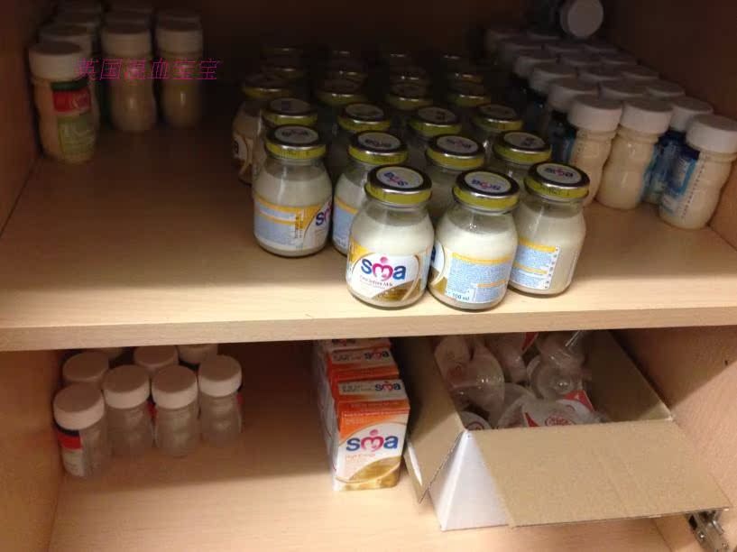 Peter喝的是爱他美,这种小瓶是75毫升装,配的是牛栏的一次性奶嘴。奶粉后面的是Spatone补铁液,我也一起带到了医院。