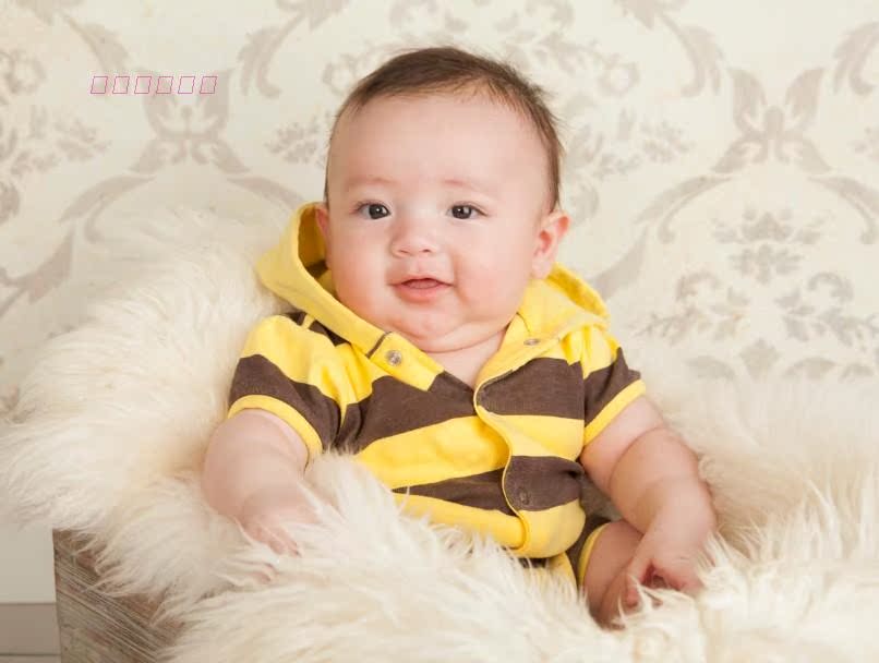 可爱的蜜蜂装。Peter9个礼拜时的照片