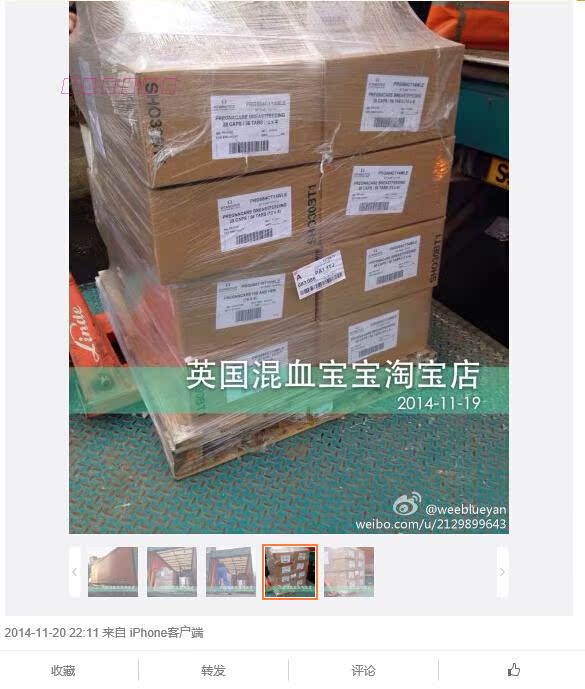 掌柜我于2008年在大宝Clark9个多月时开始经营淘宝店铺,我最开始在英国的药店和超市采购,但是由于药店和超市货架上出售的产品数量有限,不能满足国内客户的需求,之后我便一直在英国厂家直接订货。由于订货量比较大,厂家都是托盘运输。