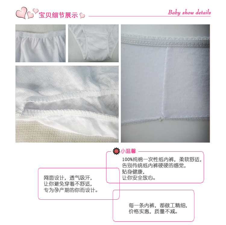 每条内裤单包独立包装,紫外线杀菌消毒,产妇可安心穿着哦~~