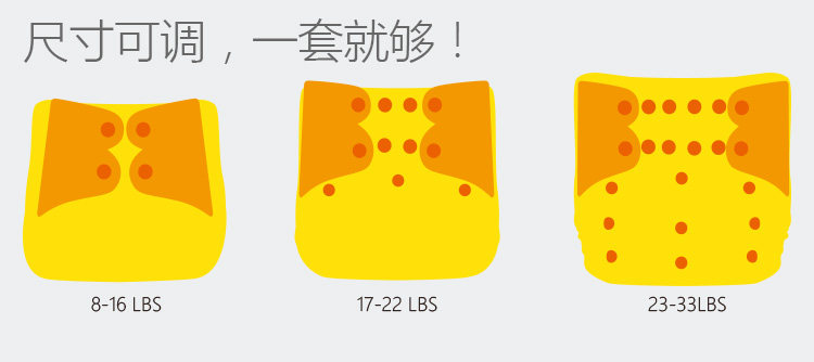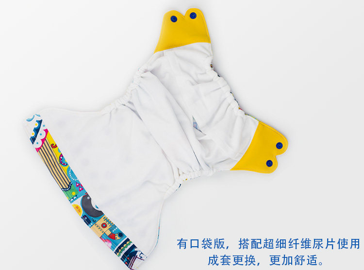 有口袋尿裤,尿片放在口袋里,用后尿裤和尿片同时更换洗涤,建议每3小时换洗一次。